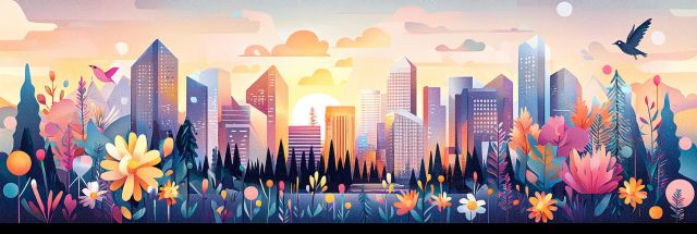Vibrant Dawn in Edmonton: A Colorful Cityscape Meets Floral Beauty