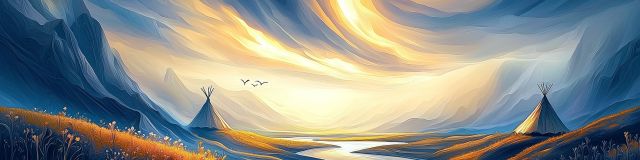 Bathed in the warm glow of a sweeping sunset, the tranquil scene of an Edmonton landscape mesmerizes viewers with its dynamic sky and serene waters. The splendid hues of orange, yellow, and blue paint a vivid picture of the sky’s canvas as it descends into twilight. In the foreground, wildflowers dot the lush greenery, adding splashes of color that contrast beautifully with the calm lake. Prominently featured, traditional indigenous tipis beside the water’s edge invoke a sense of historical reverence and cultural richness, connecting the past with the present in this peaceful tableau. The distant mountains cast in soft shadow form a majestic backdrop, completing a scene that encapsulates both the tranquility of nature and the enduring spirit of indigenous heritage. *** About Edmonton: Edmonton, the capital city of Alberta in Canada, is known for its vibrant cultural scene and as a gateway to the north. It is famed for the North Saskatchewan River valley parks system, one of the largest stretches of urban parkland in North America. Edmonton hosts numerous festivals year-round and houses several professional sports teams and leading educational institutions. The city's diverse areas include modern downtown high-rises and traditional suburban neighborhoods, making it a dynamic and inviting place for both residents and visitors.