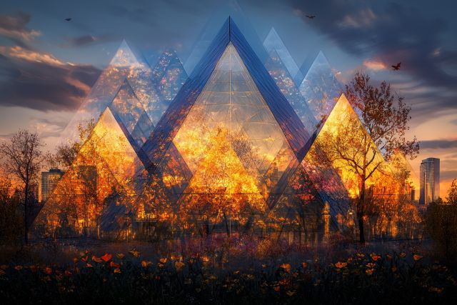 Title: "Ethereal Reflections of Autumn: Edmonton's Modern Architecture meets Nature" Photo ID: 86530