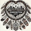 Vibrant Heart-Shaped Illustration of Edmonton with First Nations Artistry
