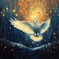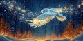 Enchanted Winter Night with a Majestic Snowy Owl in Flight