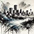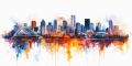 Vibrant Watercolor Interpretation of Edmonton's Skyline and Architecture