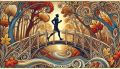 Autumn Marathon: Runner’s Journey Across a Fantastical Art Nouveau Bridge
