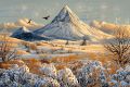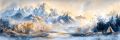Majestic Winter Landscape Depicts Tipis below Snowy Peak