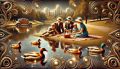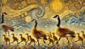 Majestic Geese Parade in Expressionist Gustav Klimt Style