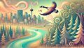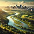 Whimsical Edmonton: River Valley and Cityscape in Artistic Harmony