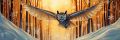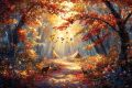 Majestic Snowy Owl Glides Through a Mystical Golden-lit Forest