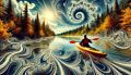 Surreal Journey: Kayaker Amidst Abstract Fractal Patterns in Edmonton