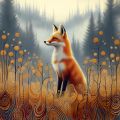 Majestic Red Fox Stands Among Serene, Mystical Forest Florals