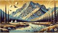 Gustav Klimt-Inspired View of Alberta's Majestic Mountains on Canvas