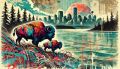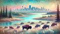Vibrant Elk Island Bisons Against Edmonton's Urban Backdrop