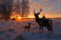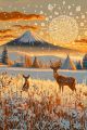 Majestic Winter Dawn with Deer in a Snowy Mountain Landscape