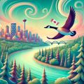Vibrant Illustration of Edmonton's Skyline and Natural Beauty