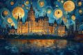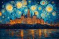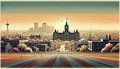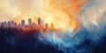 Sunlit Waves and Cityscape: A Stylized View of Edmonton, Alberta