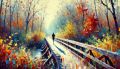 Autumn Serenity in Edmonton: Jogger on Wooden Bridge Amidst Fall Colors
