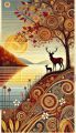 Whimsical Autumn Twilight: Deer by Tranquil Lakeside in Edmonton