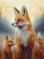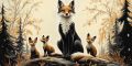 Majestic Red Fox and Kits in Autumn Forest Illustration