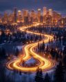 Winter Wonderland Meets Urban Glow: Edmonton's Snowy Evening