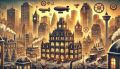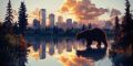 Majestic Bear Amidst Edmonton's Skyline at Sunset