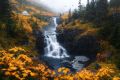 Misty Waterfall in Forest Sanctuary Decorated with Autumn Colors