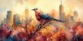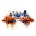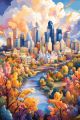 Autumnal Hues and Urban Views: Edmonton's Skyline in Watercolor