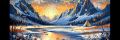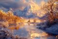 Enchanting Winter Wonderland with Golden Sunrise and Snowy Peaks