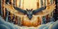 Majestic Owl in Flight Against a Snowy Winter Backdrop