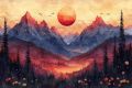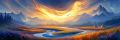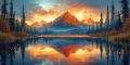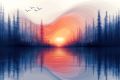 Enchanting Symmetry of Nature: A Digital Sunrise Over Tranquil Waters