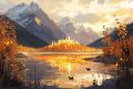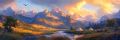 Majestic Sunset Over Snow-Capped Peaks and Serene Lakeside