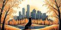 Autumn in Edmonton: A Silhouetted Wolf Gazes at Urban Skyline