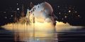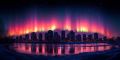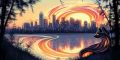 Surreal Edmonton Skyline Reflecting on Water under Cosmic Skies