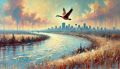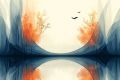 Serene Autumn Reflections in a Stylized Edmonton Landscape