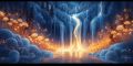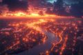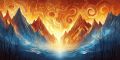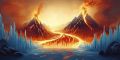 Flames and Waves Collide in Surreal Mountainous Landscape Art