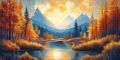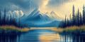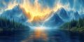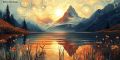 Majestic Sunrise Over Mountain Lake in Surreal Edmonton Landscape