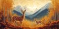 Autumn Majesty: Deer Amidst Golden Woods and Swirling Skies