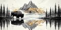 Majestic Bison by Tranquil Lake with Mountain Backdrop