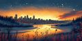Golden Hour Over Edmonton: A Minimalist Winter Skyline Illustration