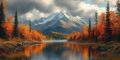 Serene Edmonton Landscape: Stormy Mountains and Reflective Waters