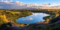 Autumnal Radiance Over Serene Lake with Majestic Sunset