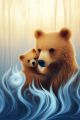 Enchanting Portrait of a Brown Bear and Cub in a Mystical Forest