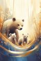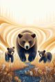 Enchanting Mother Bear and Cubs on a Whimsical Forest Path