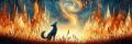 Enchanting Twilight: Wolf Amidst Spiraling Forest Flames