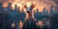 Enchanting Vision of a Mystical Deer in Sunset-Tinted Edmonton
