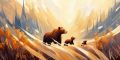 Enchanting Autumn Glow: Mother Bear and Cubs in Forest