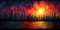 Majestic Sunset Over Edmonton: A Stylized Urban Skyline