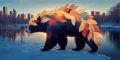 Geometric Bear Amidst Snow, Silhouetted by Edmonton's Skyline