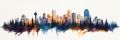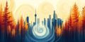 Vibrant Watercolor Depiction of Edmonton's Skyline Amid Forests