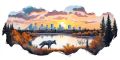 Elk Island Serenity Meets Urban Skyline in Impressionist Canvas Art