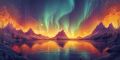 Vibrant Auroras and Majestic Peaks Reflection on Serene Lake