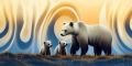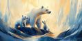 Majestic Polar Bear Family Amidst Fiery Arctic Mirage